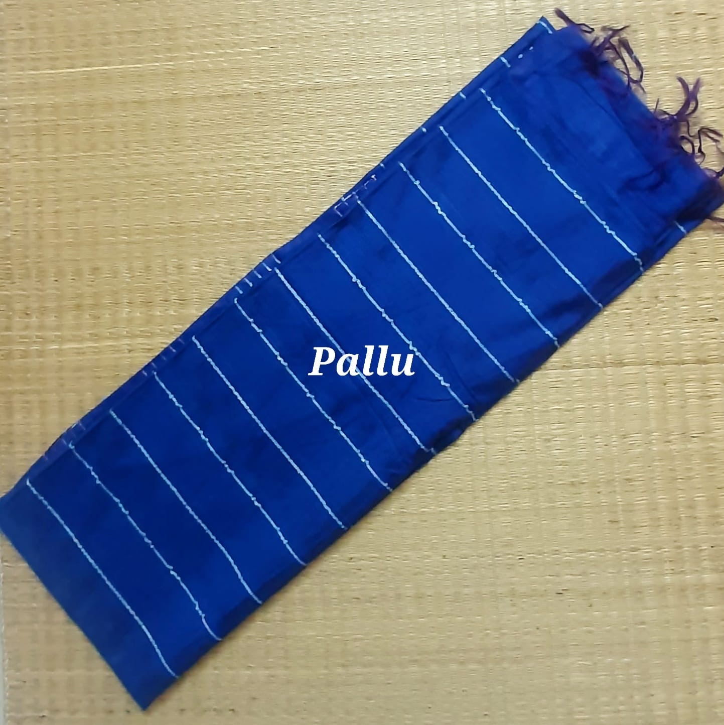 Bhagalpuri ghicha tussar silk saree in Ink Blue color with woven stripes and self woven box pattern all over the body and with ghicha and sequins pallu and tassels. It comes with plain running blouse.