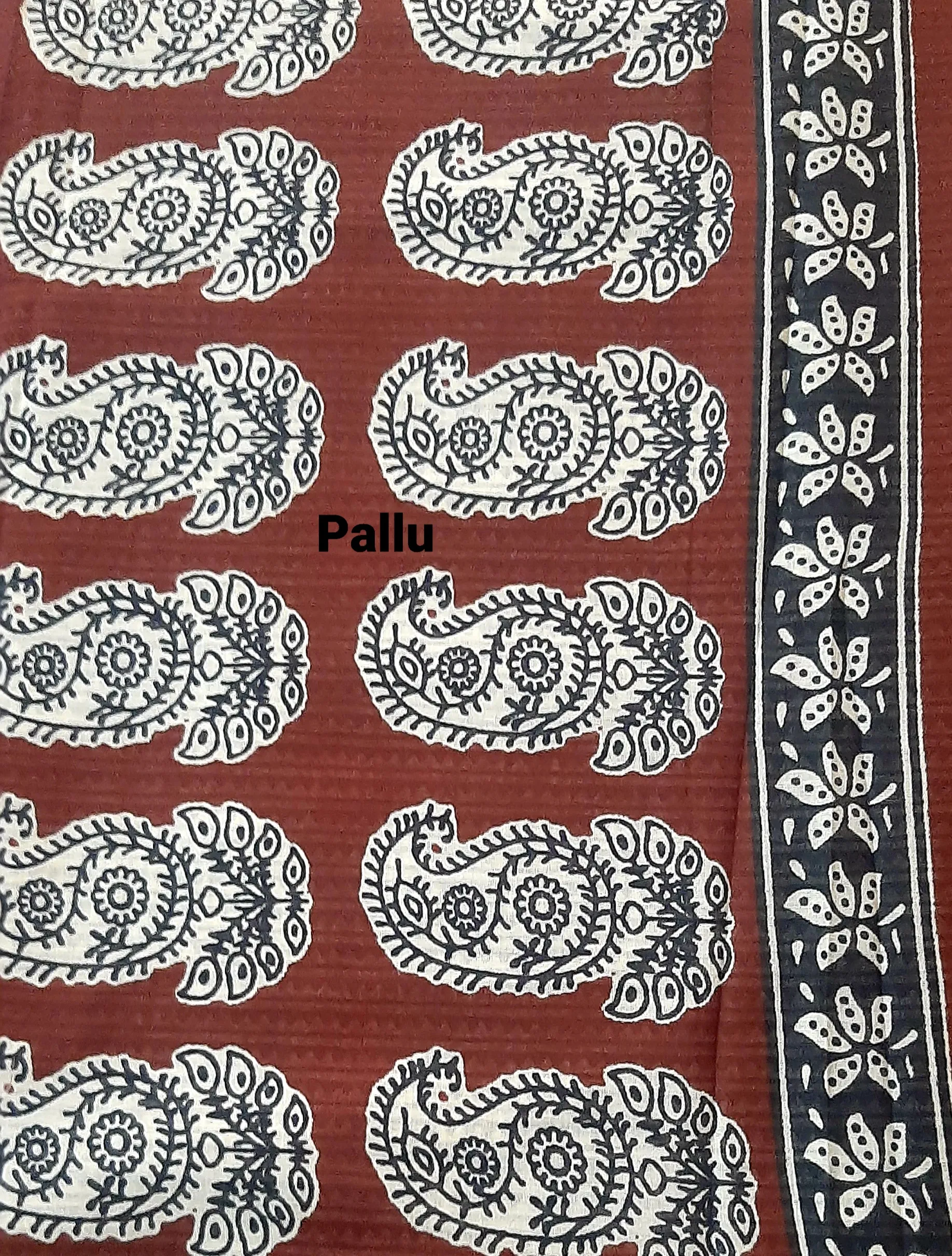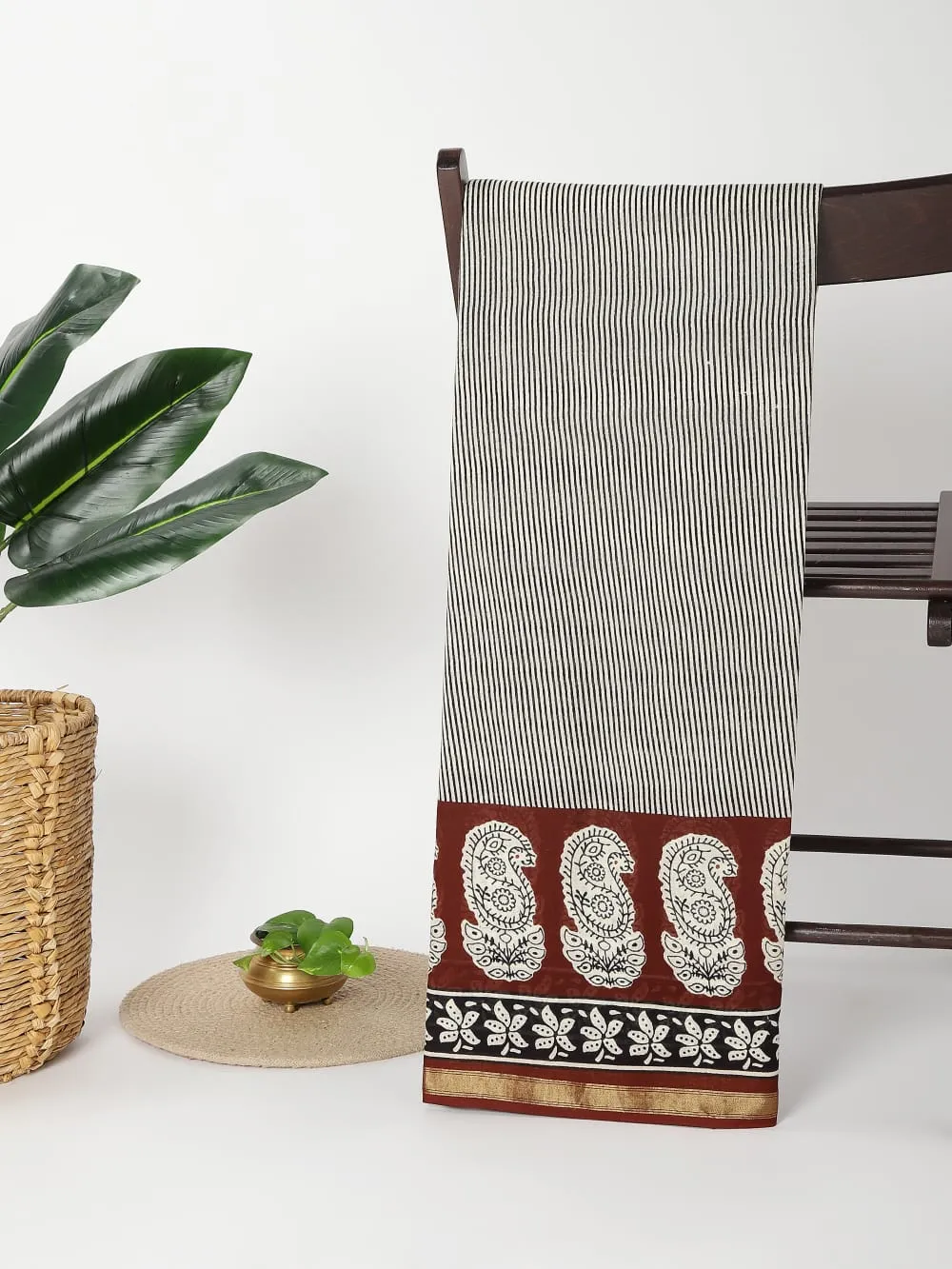 Chanderi Cotton Saree in Beige with Brown color with golden tissue border. It comes with contrast running blouse .