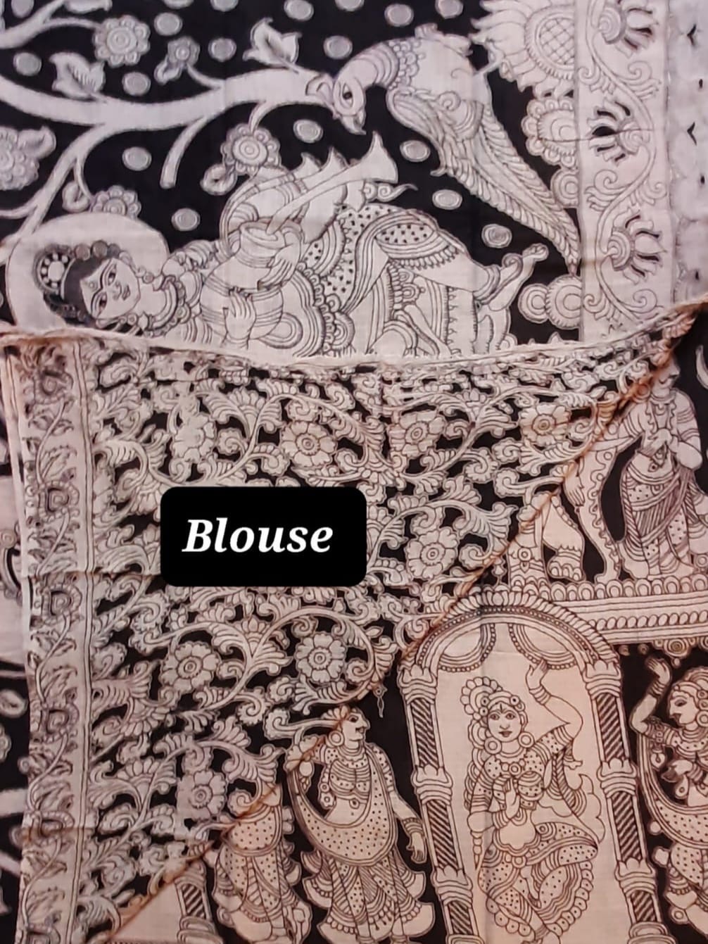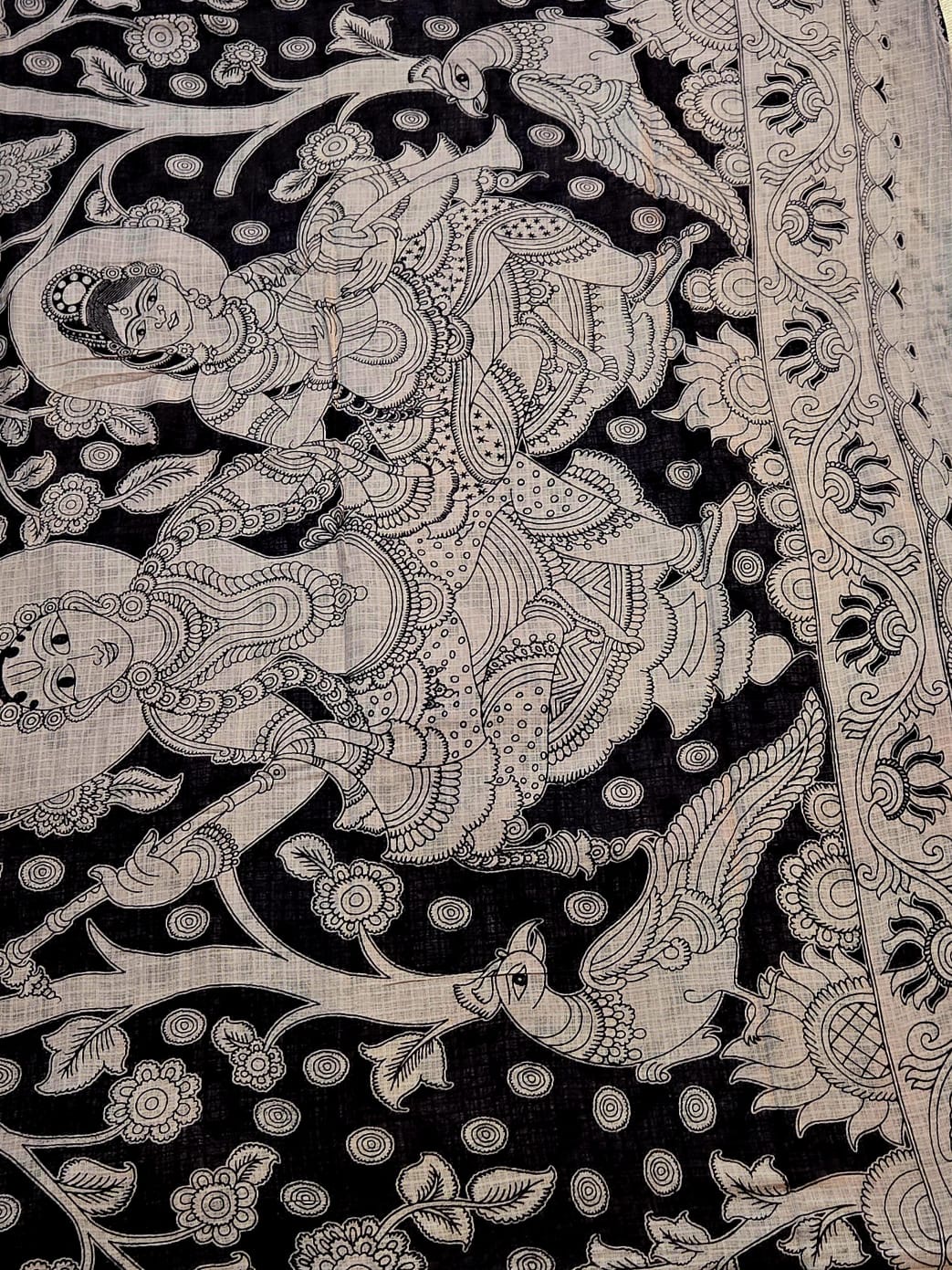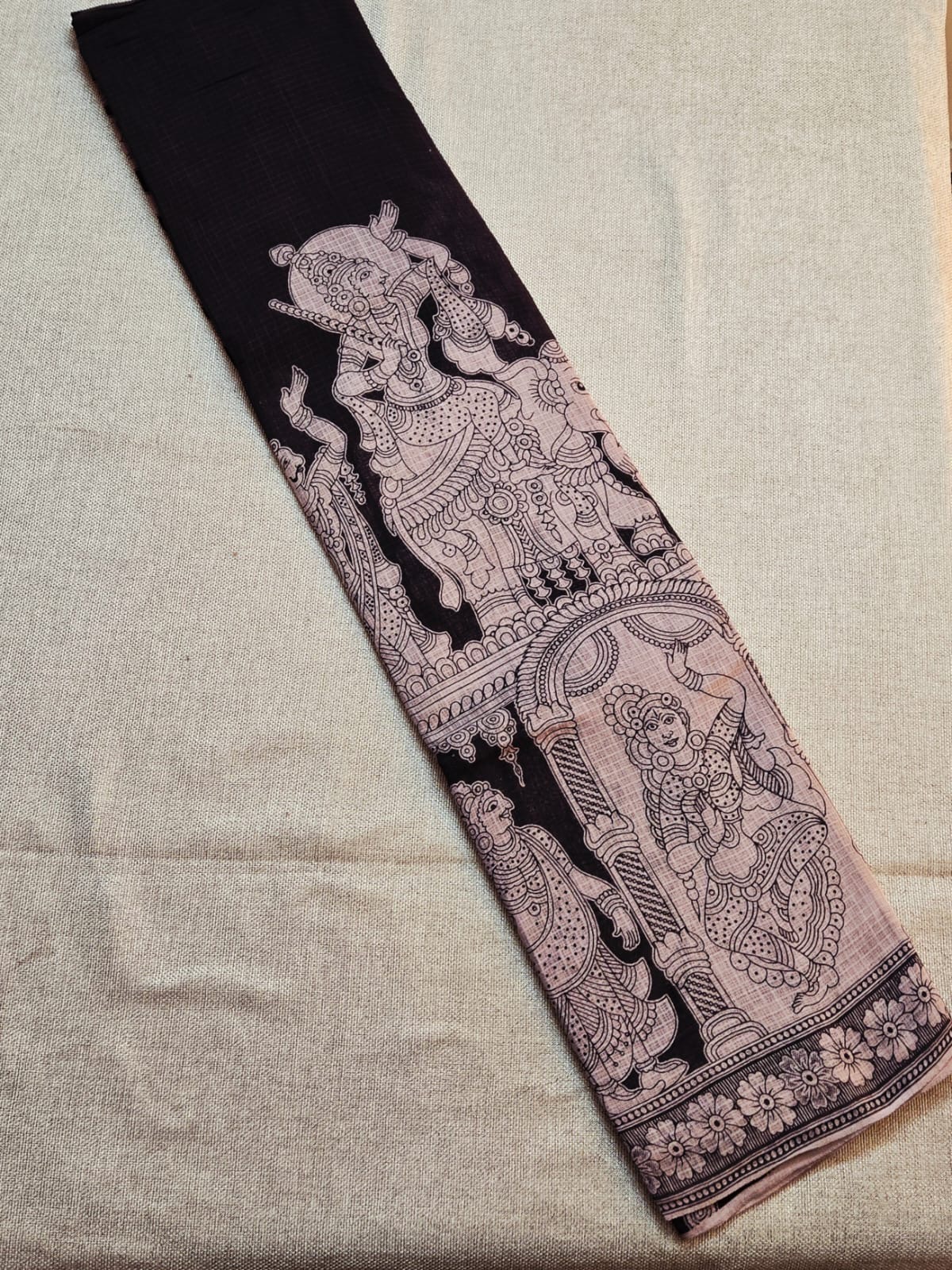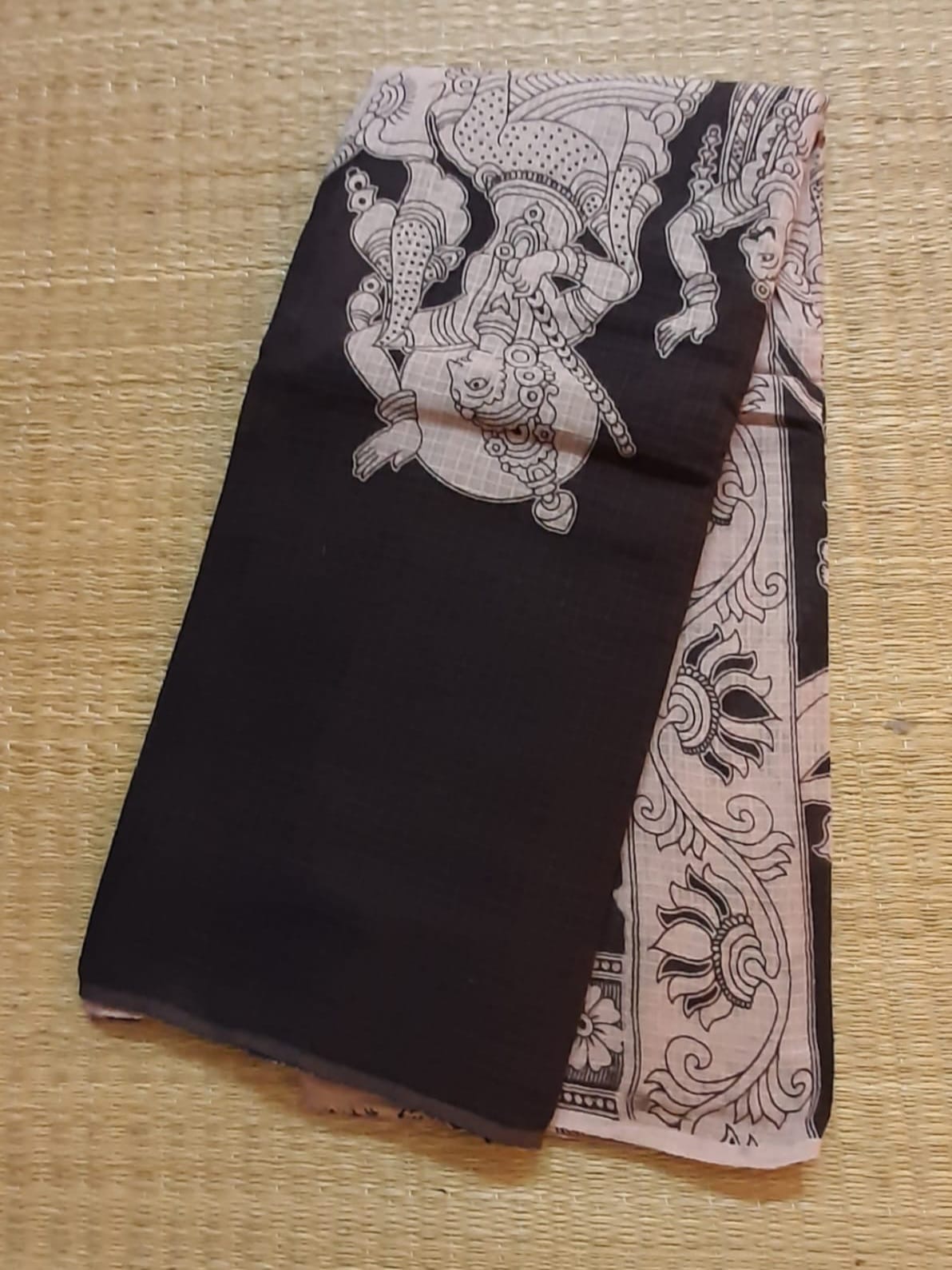 Black Kalamkari Kota Cotton Saree Prints and running BP.