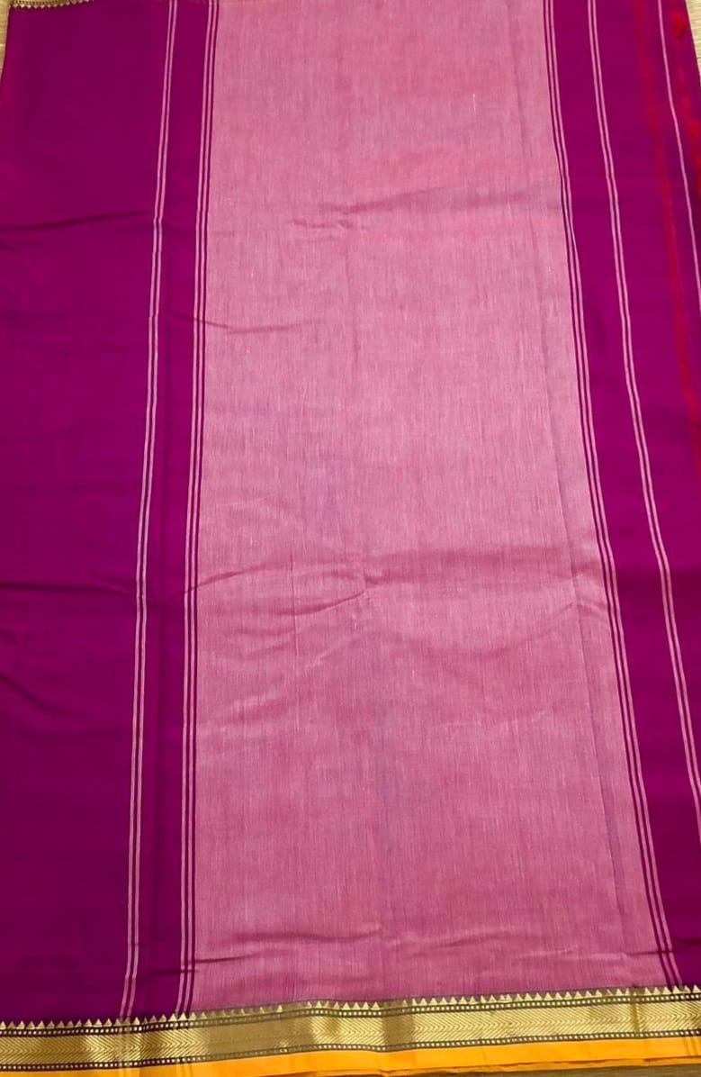 Magenta and Mango Yellow – Narayanpet Mercerized Cotton Saree
